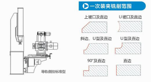 >> 動力頭增加回轉調節,銑削角度為0-90度,U型坡無須特制成型刀,銑削中心加大;